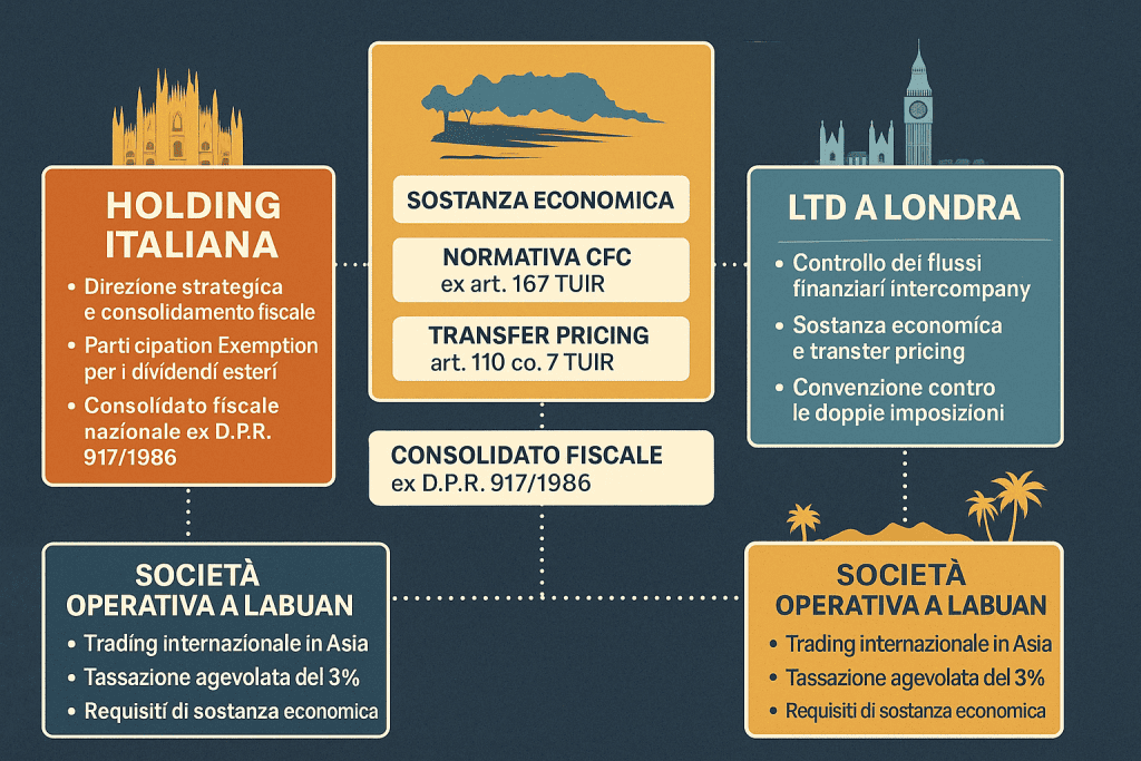 Una famiglia imprenditoriale italiana ha riorganizzato le proprie attività globali attraverso una struttura multilivello con Holding italiana, LTD a Londra e società operativa a Labuan. La nuova architettura garantisce sostanza economica, tracciabilità fiscale e governance strategica, disinnescando il rischio CFC e rafforzando la protezione patrimoniale a livello internazionale.